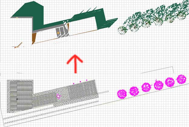 Ora non rimane che trascinare le ombre modificate al loro posto, spostandole della stessa misura di prima. Il disegno 2D ottenuto ha il tremendo difetto di avere in molte parti una serie infinita di linee doppie sovrapposte! La soluzione a questo fastidioso problema sta nell'add-on Controllo Duplicati,contenuto nella cartella Goodies di Archicad: una volta caricato il nuovo Add-on, si avvia una scansione del disegno che selezionerà tutte li linee sovrapposte. Le si cancella ed il problema è risolto. (In ArchiCAD 11 per scaricare e installare questo add-on occorre usare il comando Goodies dal menu Aiuto).