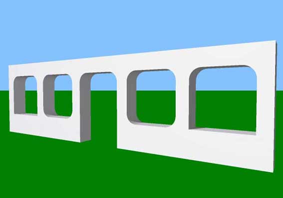 Vediamo la soluzione più semplice. Cominciamo a "scomporre" il nostro foro architettonico in una serie di forme base, più semplici, riconducibili ad elementi già presenti nella libreria di ArchiCAD. L'utente necessitava di due tipologie di finestra: una con tutti e quattro gli angoli arrotondati ed una con il bancale piatto:
