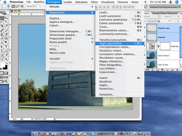 Andate adesso nel menu Seleione e scegliete Deseleziona. Guardate adesso il livello: ecco la morbidezza di cui parlavamo prima.