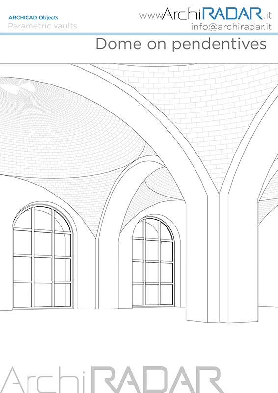 L'oggetto Cupola su pennacchi parametrica di ArchiRADAR è stato concepito per velocizzare il lavoro del progettista, grazie alla possibilità di gestire molti parametri. I quattro punti della volta sono tutti editabili in forme libere anche autonomamente in altezza.